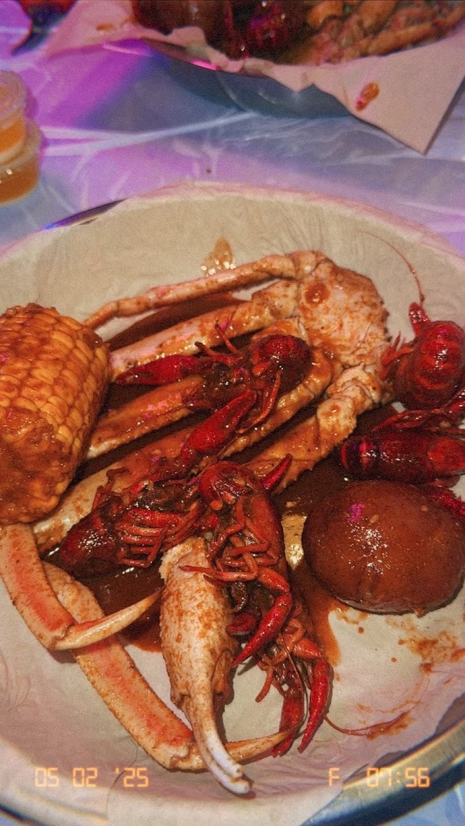 The menu keeps things focused without feeling limited. You’ll find staples like crab legs, crawfish (when in season), mussels, clams, and shrimp, plus baskets for anyone craving fried catfish or wings. Sides like corn, potatoes, and boiled eggs aren’t just fillers; they soak up the seasoning and complete the meal. One regular I spoke with mentioned that he always orders extra corn because, in his words, best bite in the bag. That kind of comment comes up often in reviews, and it tracks with what ends up empty first on the table.
